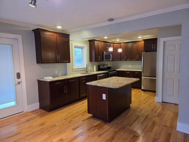 Available for rent in the highly sought-after Webster School District! This completely updated 3-bedroom, 1.5-bath full house offers modern finishes and the privacy of single-family living. The bright, updated kitchen features stainless steel appliances and flows seamlessly into a full dining area-perfect for everyday living and entertaining. Enjoy outdoor living with a back deck/patio and a fully fenced yard, ideal for relaxing or hosting guests. Additional highlights include private off-street parking, an alarm system for added peace of mind, and the convenience of RGE and water included in the rent.
