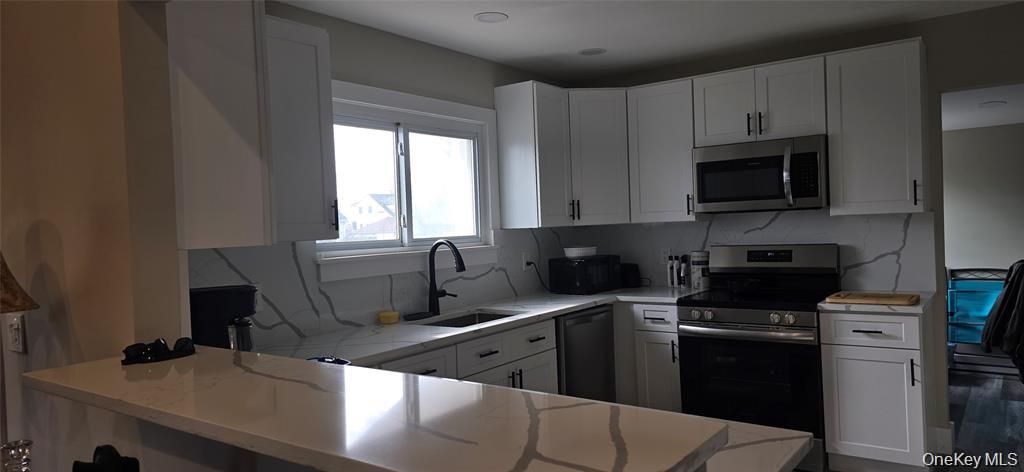 Welcome to 19 Kent. This beautifully maintained 2-bedroom, 1-bath seashore cottage features a fully updated kitchen and bath. The modern kitchen boasts stylish cabinetry, sleek countertops, and stainless-steel appliances-perfect for everyday living and entertaining. The bathroom has been tastefully renovated with contemporary finishes. Enjoy comfortable living spaces filled with natural light and take advantage of the spacious 2-car garage for parking, storage, or hobby space. Conveniently located near shopping, parks, transportation, with bridge access to Fire Island National Seashore. This move-in-ready home offers comfort, convenience, and value all in one.
