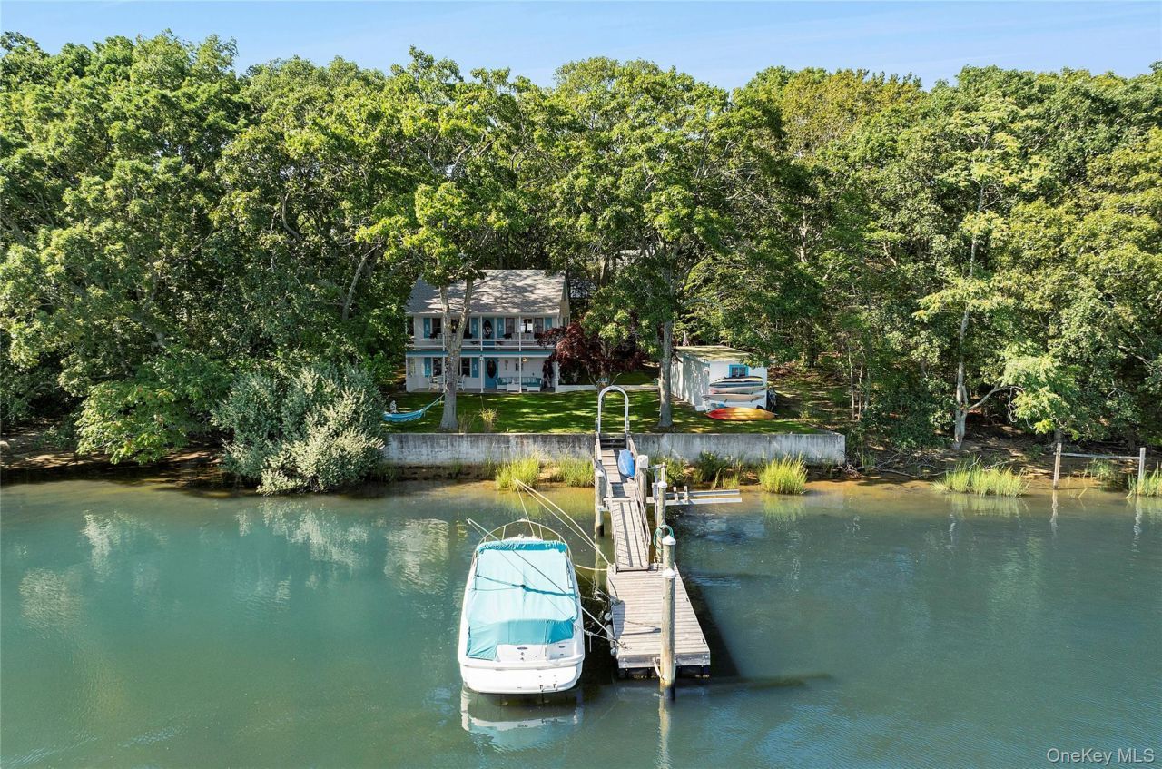 This unique waterfront offering boasts an unprecedented 228 feet of water frontage in the highly sought-after Redwood Island neighborhood of Sag Harbor Village. This south-facing, partially bulkheaded lot offers breathtaking panoramic views of Sag Harbor Cove and features a private dock equipped with a jet ski lift, accommodating multiple boats for convenient access to the Village and the Bay. The charming nautical-themed cottage boasts a charming eat-in kitchen with a tin ceiling, a cozy living room with a fireplace, 3 bedrooms, 2 bathrooms, a detached garage, and a covered deck and patio - ideal for relaxing and enjoying the expansive water views. Explore the potential of this extremely rare, double-wide waterfront opportunity, just a mile from Sag Harbor Village's year-round activities.