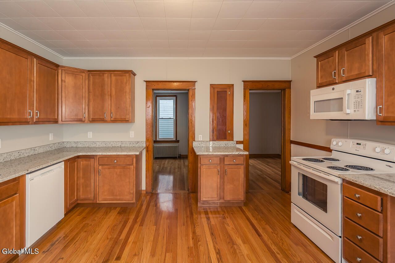 Limited Service Listing Agreement - Please contact the owner directly at (518) 848-0036 with all inquiries.Newly renovated 2-3 bedroom apartment offering a bright, clean, and well-maintained living space with a combination of classic character and modern updates.The apartment features beautifully refinished hardwood floors, fresh paint throughout, and an updated kitchen with attractive cabinetry, granite countertops, stainless sink, modern faucet, and abundant counter and cabinet space. The layout provides generous room sizes with excellent natural light and flexible spaces that can accommodate bedrooms, a home office, or additional living area depending on your needs.The bathroom has been renovated, and the unit offers a comfortable, functional floor plan with charming original trim and woodwork that add warmth and character.The exterior of the building has been recently improved with new siding and a new covered front porch-perfect for enjoying a bit of outdoor space.No pets. No smoking. Tenants pay their own utilities.First month's rent and security deposit required.Minimum credit score and income requirements apply.Month-to-month tenancy agreement required.For more information or to schedule a showing, please contact the owner directly at (518) 848-0036.